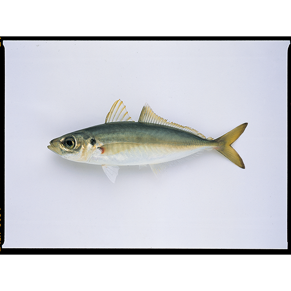 硬骨魚綱スズキ目アジ科アジ亜科に属する海水魚。北海道南部以南の日本各地の沿岸、小笠原(おがさわら)諸島海域、沖縄、台湾など東シナ海、南シナ海などに分布する。山口県や九州ではアオアジという。体高がやや高くてわずかに側扁(そくへん)し、体長の23.5%以上ある。脂瞼(しけん)(目の周囲や表面を覆っている透明の膜)が発達する。胸びれの長さは頭長に等しく、第2背びれの起部下に達する。頭の背縁の鱗(うろこ)は瞳孔(どうこう)の前縁付近に達する。背びれ軟条数は30~34本、臀(しり)びれ軟条数は25~30本で、各ひれの後ろに1本の小離鰭(しょうりき)がある。体の背側面は緑青色、腹面は銀白色で、ひれは淡黄色。沿岸水の影響の強い水域に好んで生息し、おもにオキアミ類、コペポーダ類、甲殻類の幼生を捕食するが、稚仔魚(ちしぎょ)や小形の魚類も食べる。産卵は九州西岸域では7~8月に水深10~30メートルの沿岸域や、ときには内湾に来遊して行われる。卵径は0.66~0.72ミリメートル、分離浮性卵。1年で体長約15センチメートル、2年で19センチメートル、3年で21センチメートル、4年で23センチメートルほどに成長する。最大体長は30センチメートルほどに達し、大形のものはオオアジともよばれる。巻網、敷網、定置網、釣りなどで漁獲される。マアジより価格は安い。鮮魚、塩干品などとして利用する。