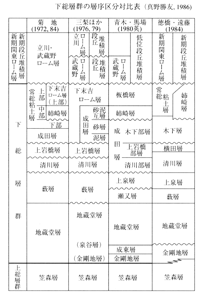 房総半島中部から北部に分布する中・上部更新統。かつての成田層群。日本の海成中部更新統の模式層。層区分や下位の上総層群との境界についてはいくつかの意見がある。一般には,下位から金剛地層・地蔵堂層・藪層・上泉層・清川層・上岩橋層・木下