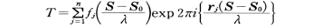 ある分子に含まれている全核外電子による散乱X線のある方向における合成振幅と1個の自由電子による散乱振幅の比。分子がn個の原子からなりj番目の原子の座標をrj, 原子散乱因子をfj, 入射X線方向の単位ベクトルをS0, 観測方向の単位ベクトルをSとすると分子構造因子Tは,