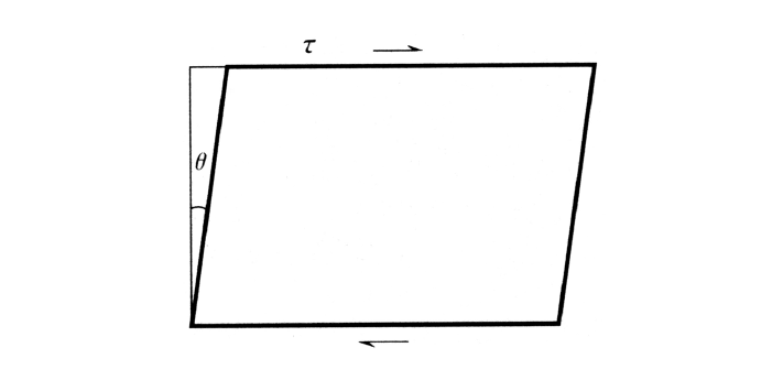ずり変形に関係した弾性定数。直方体の一対の面に対し平行に逆向きの力を加えると,直角形が平行四辺形になるような変形(ずり変形)をする。このとき角度の変化θは単位面積当りの力(ずり応力)τに比例し,τ=μθの関係で結ばれる。この比例係数μは物質固有の定数で,剛性率と呼ばれる。固体ではμ>0であり,液体はμ=0の極限の状態とみなせる。