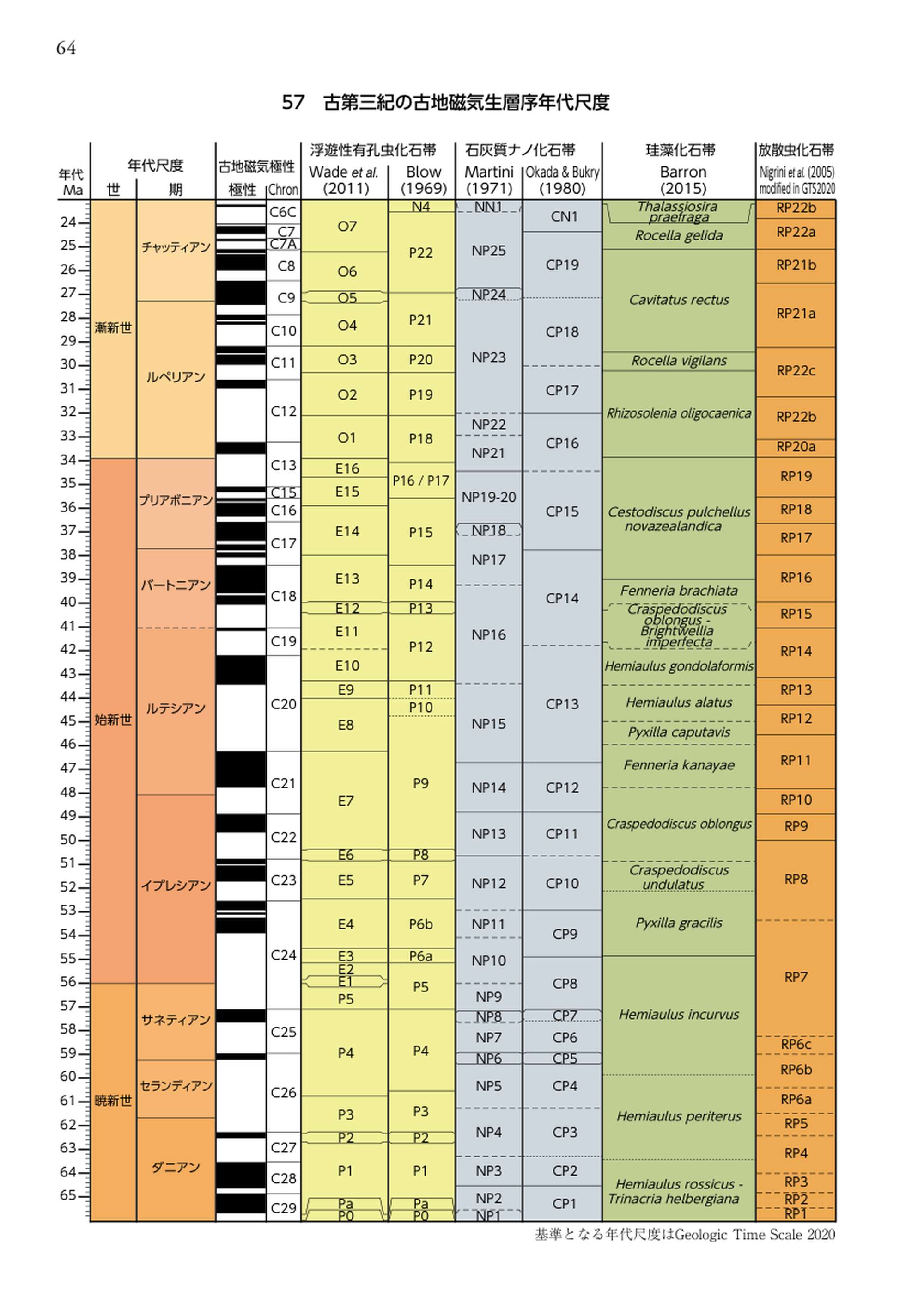 最新 地学事典に掲載されている「古第三紀の古地磁気生層序年代尺度」をご覧になれます。詳細については、画像をクリックして拡大し、ご覧ください。
