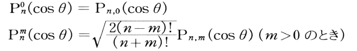 シュミット半正規化されたルジャンドル陪関数(Schmidt quasi-normalized Legendre function)と呼ばれる。ガウス係数は地球上の複数点で観測された磁場を適当な階数まで球関数展開することによって求められ,ガウス係数モデルとしては10階まで展開された国際標準地球磁場および確定国際標準地球磁場の係数が代表的である。磁場の成分Br, Bθ, βϕはスカラーポテンシャルを微分して