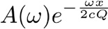 地球は完全弾性体ではないため,非弾性の効果によって地震波減衰が生ずる。伝播に伴い振幅は指数関数的に減衰し,減衰はQと呼ばれる量で特徴付けられる。具体的に,角周波数ω[rad/s]の平面波が位相速度c [m/s]で伝播する場合を考える。位置x=0の地点での振幅をA(ω)とした場合,位置xでの振幅はQを用いて