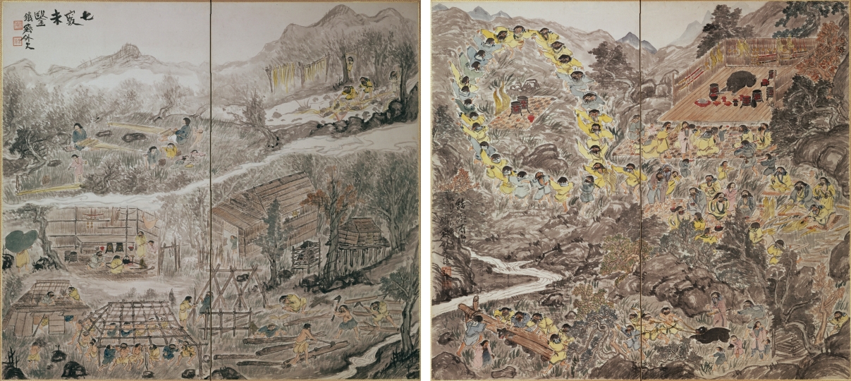 画(え)は19歳のころ大角南耕、窪田雪鷹に南画の手ほどきを受け、長崎旅行(1861)の際、木下逸雲(きのしたいつうん)や鉄翁に画法を問うたりもしたが、ほとんど独学である。南画や明清画(みんしんが)、大和絵(やまとえ)などの諸派の研究、また写生をその基礎に独自の画風をつくりあげたが、特色とするところは、生新な色彩感覚と気迫に満ちた自由放胆な水墨画風のものにあり、多く晩年に傑作を残している。活発になった明治画壇で、各種の展覧会や博覧会の審査員となるが、自身は南画協会、後素如雲社展(こうそじょうんしゃてん)以外は出品せず、自適の生活のうちに在野の学者としての態度を貫いた。「万巻の書を読み、万里の道を行く」文人哲学を指標に、博学多識、稀覯(きこう)の書の収集家としても聞こえた。1917年(大正6)に帝室技芸員、1919年に帝国美術院会員に任ぜられている。大正13年12月31日京都に没。代表作に『不尽山全頂図(ふじさんぜんちょうず)』『安倍仲麿明州望月図(あべのなかまろめいしゅうぼうげつず)』『旧蝦夷風俗図(きゅうえぞふうぞくず)』などがあり、『小黠大胆図(しょうかつだいたんず)』のような小品にも優れたものを残した。宝塚(たからづか)市の清荒神(きよしこうじん)内に鉄斎美術館がある。