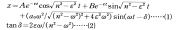 ω2sinωtとなる。ここで,左辺の第2項は速度に比例した抵抗力を,第3項は変位に比例した復元力を示す。この項のnは