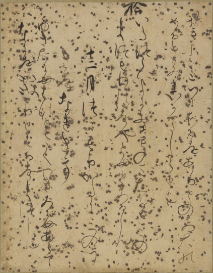 書きものをするための紙。平安時代に上流社会で多くの紙が消費されるようになると、料紙は詩歌を美しく書くため、さらに紙質が重んじられるようになり、美意識の対象となった。なかでも奈良時代からの染め紙は色紙(しきし)として形式化され、美しくしかも薄く漉(す)ける流し漉きの技法と染色技術が組み合わさって、打曇(うちぐもり)(内曇)、飛雲(とびくも)、羅文紙(らもんし)などの漉き模様紙や、金、銀の砂子(すなご)、切箔(きりはく)、野毛(のげ)などによる加工紙、また墨流(すみなが)し、切り継(つ)ぎ、破り継ぎ、重ね継ぎなどの技法による継ぎ紙など、多種多様の料紙が工芸美術として発達した。これらは書道の発展とも関連して、現在までに多くの傑作が残されている。