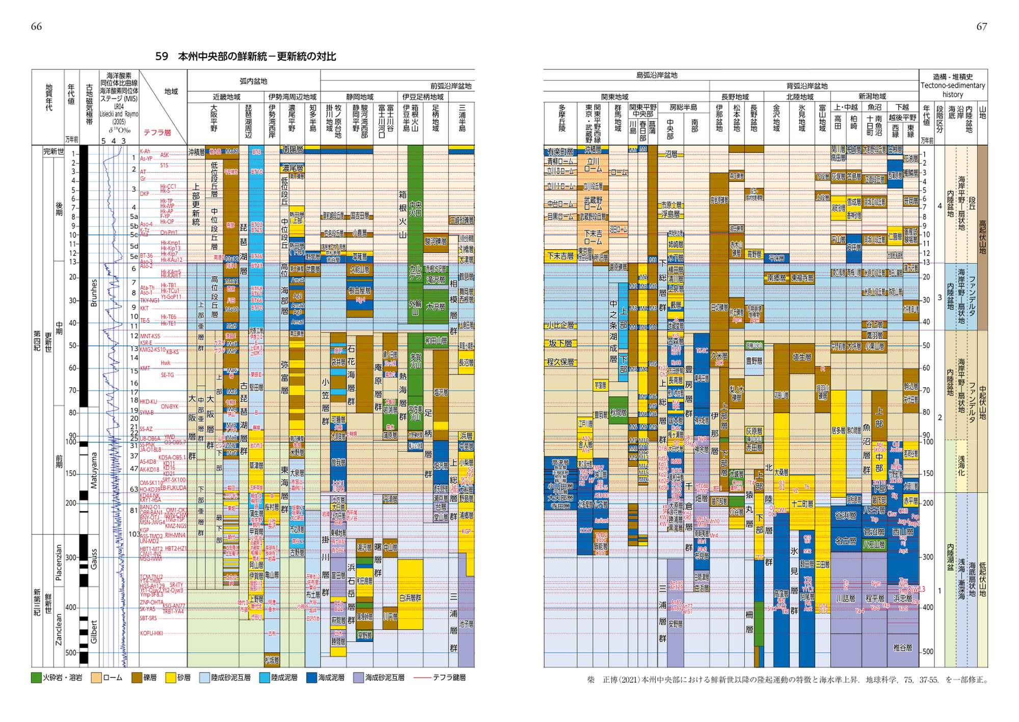 最新 地学事典に掲載されている「本州中央部の鮮新統-更新統の対比」をご覧になれます。詳細については、画像をクリックして拡大し、ご覧ください。