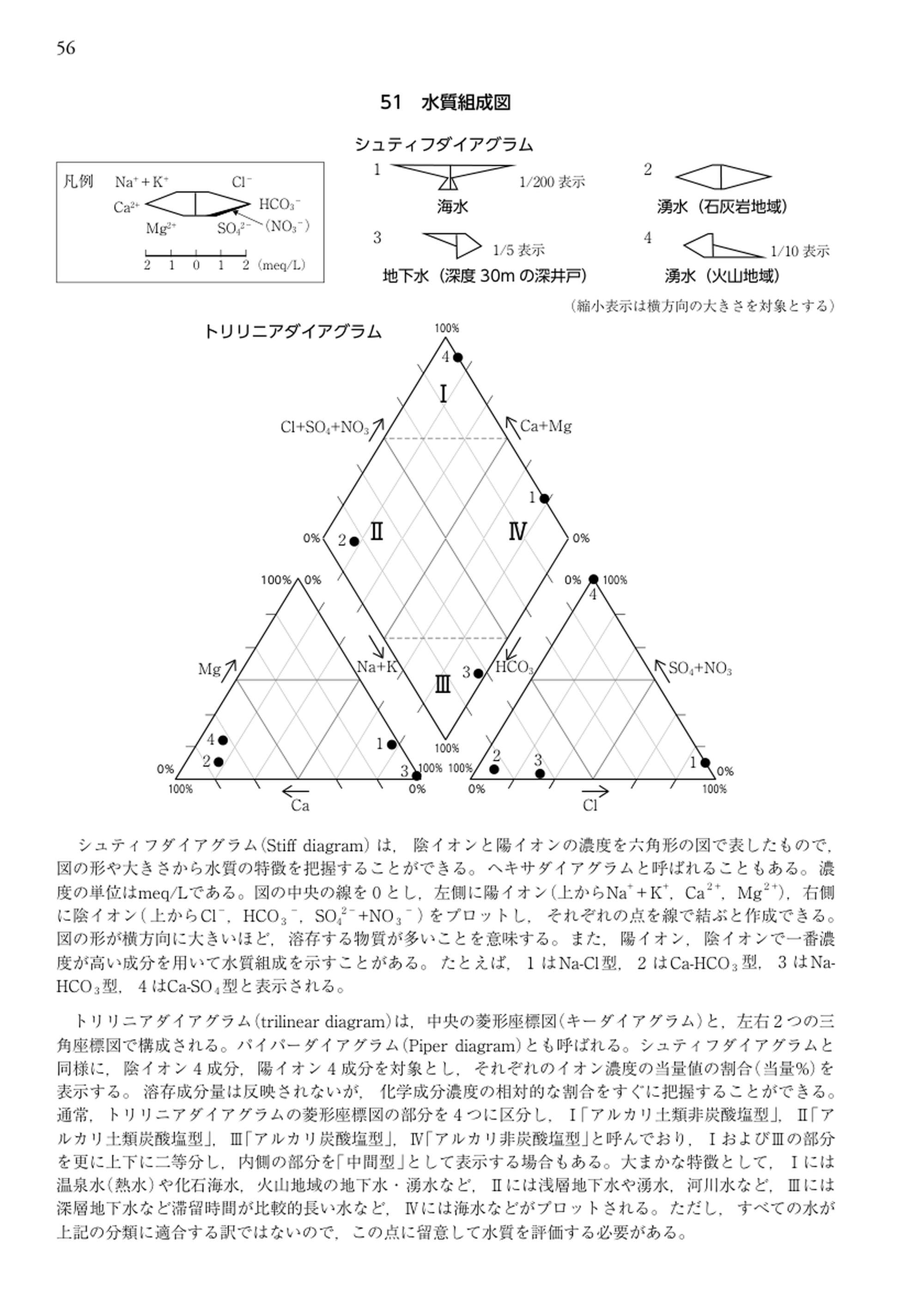 最新 地学事典に掲載されている「水質組成図」をご覧になれます。詳細については、画像をクリックして拡大し、ご覧ください。