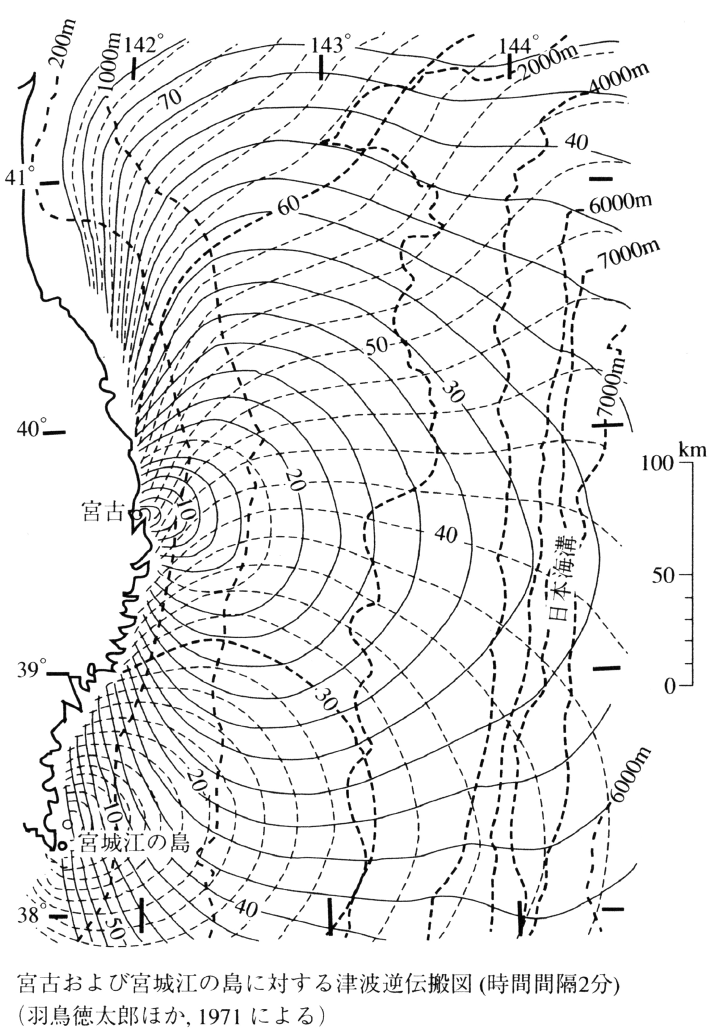 最新 地学事典 「津波の逆伝搬図」の解説