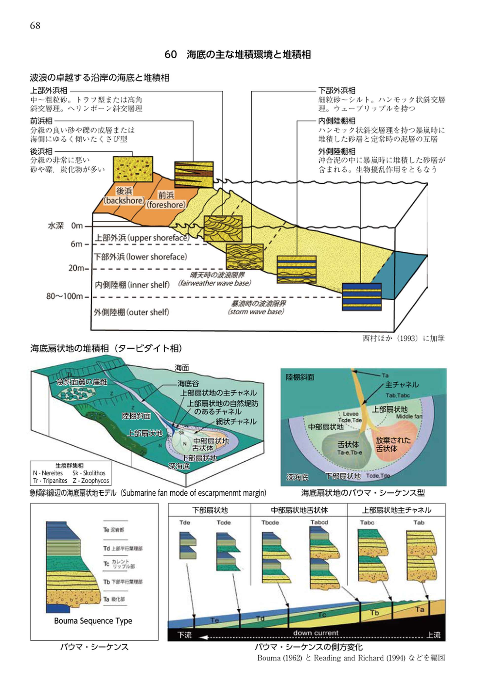 海底の主な堆積環境と堆積相