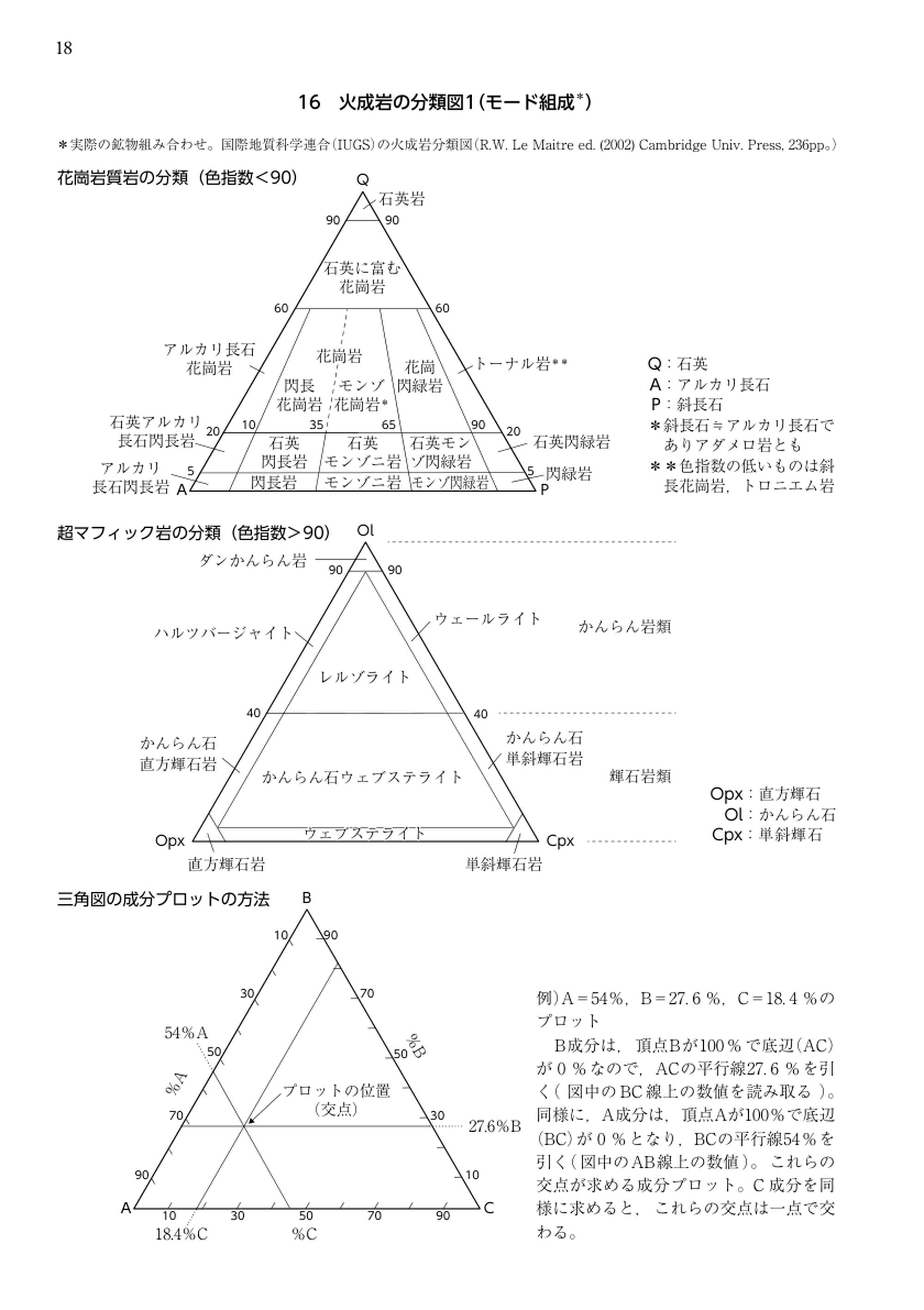 最新 地学事典に掲載されている「火成岩の分類図1(モード組成)」をご覧になれます。詳細については、画像をクリックして拡大し、ご覧ください。
