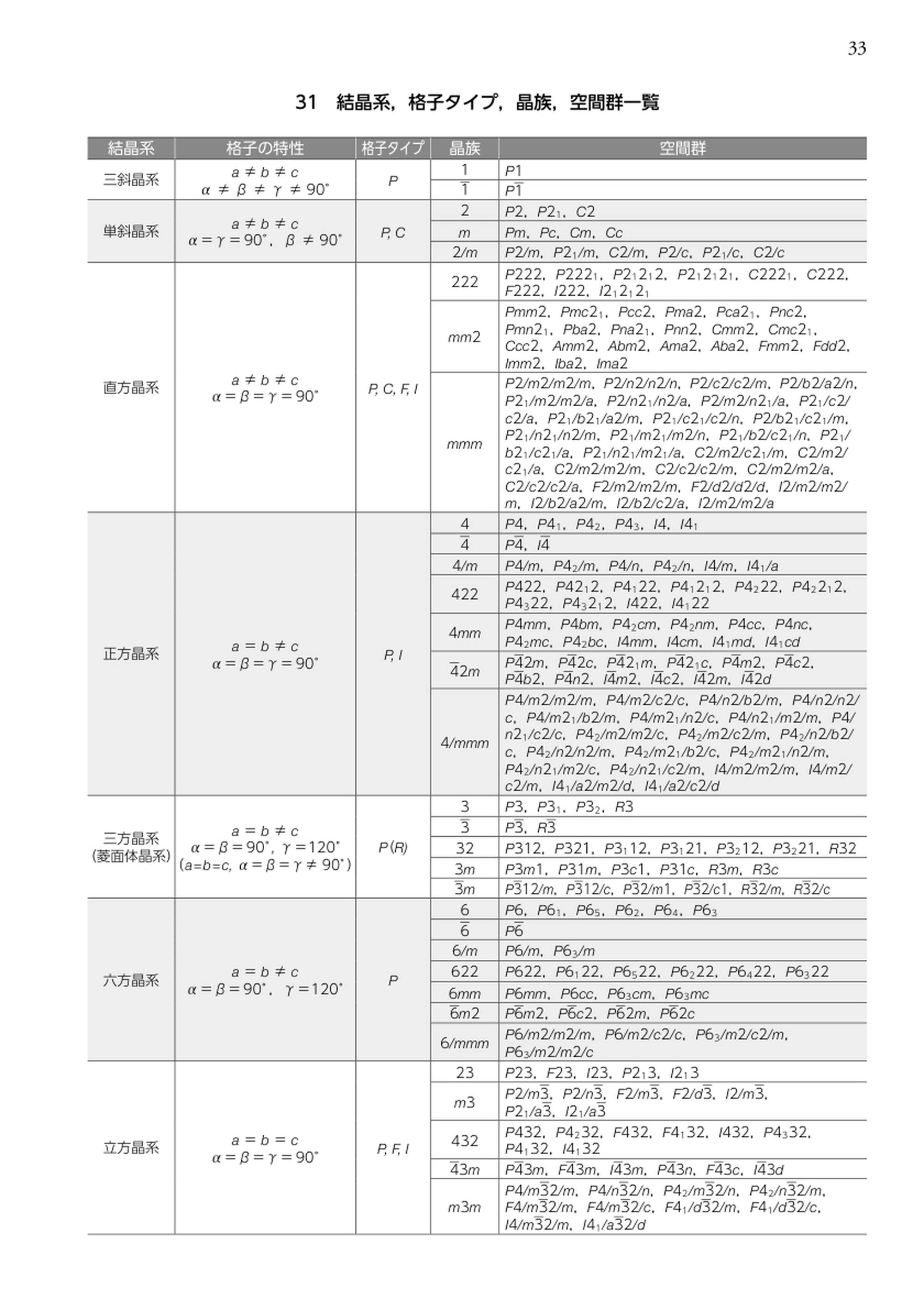 最新 地学事典 の解説 結晶系,格子タイプ,晶族,空間群一覧 最新 地学事典に掲載されている「結晶系,格子タイプ,晶族,空間群一覧」をご覧になれます。詳細については、画像をクリックして拡大し、ご覧ください。 結晶系,格子タイプ,晶族,空間群一覧 出典 平凡社「最新 地学事典」最新 地学事典について 情報 Sponserd by