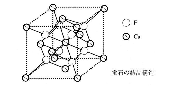 化学組成CaF2の鉱物。立方晶系,空間群Fm3m, 格子定数a0.5452nm, 単位格子中4分子含む。多くは立方体,八面体,双晶は貫入双晶,劈開は{111}で完全,硬度4,比重3.18, Yを含むものは3.3~3.6, 融点1,360℃。本来は無色であるが,緑,紫色のものが多い。各種放射線照射,加圧,加熱で変色,紫外線照射で強いリン光を発するものが多い。屈折率nD1.4338, 偏光下では等方体ではなく,微斜長石の交差双晶に似た細かい組織がみられる。溶融法で作製したCaF2でも等方体でないことが多い。CaはYに68%,Ceに33%まで置換される。しばしば微量のEr, Laなどの希土類を含んでいる。液体包有物が多数含まれているものが多い。花崗岩・閃長岩・グライゼン中に後期の晶出鉱物として産し,またアルカリ岩にも産する。ペグマタイトにも比較的広く副成分として産する。金属鉱床の脈石として石英・方解石・重晶石などと共生,石灰岩・苦灰岩などの堆積岩の晶洞中に天青石・石膏・硫黄などと共生。一部気成鉱床の特徴的鉱物としてトパーズ・電気石・硫黄などとともに産出。製鉄用融剤,特殊ガラス原料,特殊光学レンズなどに利用されている。融剤として物を容易に溶かすため,ラテン語のfluere(流れる)から命名。fluorescence(蛍光)は,この鉱物に由来した用語。