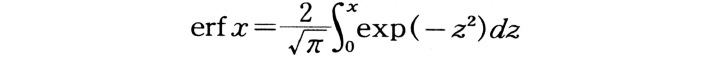 この積分は解析的には不能。数値積分の結果が大きな数表に載せてある。1-erf x=erfc xと記す。拡散や熱伝導の微分方程式の,特定な初期・境界条件のときの解を表すのに利用される。