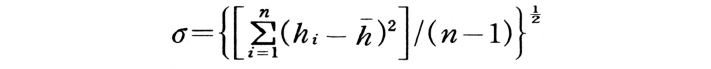 地表面の起伏の大きさ(地表面の粗度)を表す指標の一つ。地表面上の任意の区画の高度頻度分布の標準偏差で表現。区画内にn個の地点を設け,地点i(i=1, 2, 3……,n)の高度をhiとすると,区画の平均高度