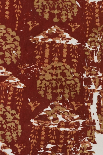 蝋(ろう)染めの古名。「ろうけつ」ともいう。蝋で帛布(はくふ)の部分を覆って防染することにより、模様を染め表した染色品。中国では新疆(しんきょう)省の民豊尼雅(ニヤ)の東漢墓(2~3世紀)より、蝋染めの木綿布が数種発見されており、きわめて早い時期からこの種の技法が知られていたことがうかがわれる。これらの木綿布の蝋染めに対し、隋(ずい)・唐代には絹地の蝋染めが発達し、日本には奈良時代にその技法が伝えられた。正倉院の染色品のなかには『東大寺献物帳』(国家珍宝帳)所載の﨟纈屏風(びょうぶ)をはじめ、その他幡(ばん)、装束など数多くの資料が残されている。﨟纈の施されている裂(きれ)地は、絁(あしぎぬ)や羅など薄地の絹がもっとも多く、綾(あや)や布地のものはきわめて少ない。